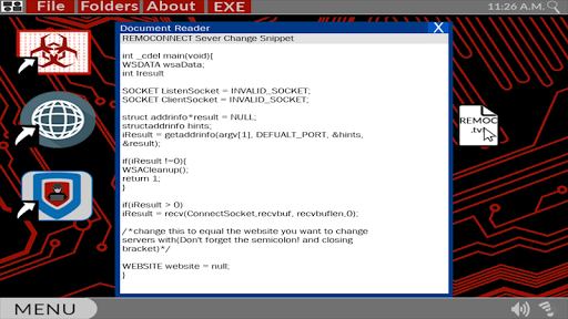 Hacker.exe is an atmospheric Survival Horror/Strategy/Simulation that puts you on the shoes of a hacker. Hacker.exe is a twist on the take of an exe game, adding a more unique mystery to the game genre while also being a horror/creepy point and click hacking simulator. Game mechanics such as tower defense strategies, puzzles, lore and quick time events are all present in the game. Your main goal is to solve the overarching puzzle of the game whilst trying to not get caught.