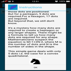But for a pentagon, 9 dots are required.For a hexagon, 17 dots are required.