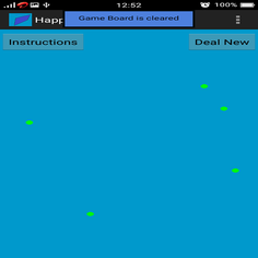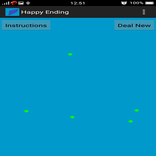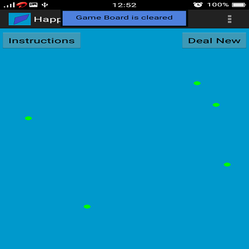 Five green dots are placed at random on the screen.