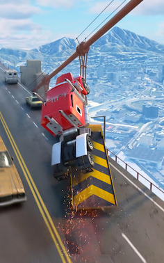 Who ever said heavy machinery couldn't fly? Jump behind the wheel of colossal vehicles like dump trucks, 6-wheeled cranes, armored transporters, and more. Your job? To race through the sky-high tracks, bursting with jumps and challenges, all while the laws of physics shake their head in disbelief. Each attempt is a wild ride, with earnings to boot. Upgrade your machine's power, its gravity-defying capabilities, or the cash you earn. The sky (literally) is the limit! Dive into a thrilling world where massive vehicles dance in the air. Remember, size doesn't matter when you have enough horsepower and a ramp ahead. Ready to redefine aerodynamics with a bulldozer? Buckle up!