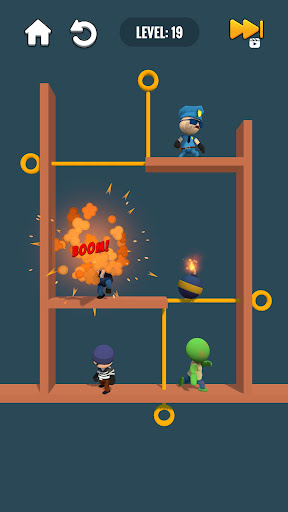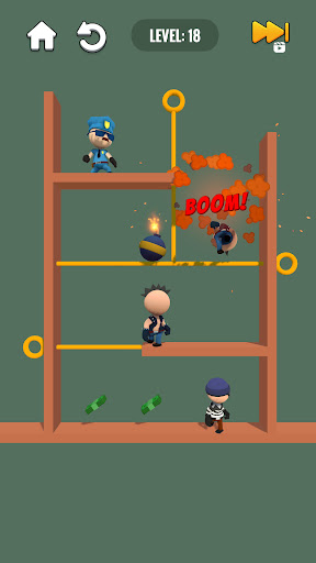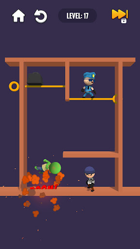 Help the brave policeman who is on a mission to catch an escaped criminal. Use your wits and tricks to pull the right Pins to help the police catch him. On the way to catch him you may encounter Zombies, or stubborn thugs. Be careful of the traps that the criminal sets. Be careful!!!
