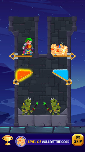 The hero began his journey for treasure and to save the princess, but the puzzles in front of the hunter trapped him. What you need to do is to pull the pins in the right order, so that the hero can take the hidden treasure and save the princess away from the dragons, wolves, and monsters safely.