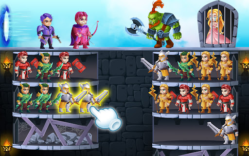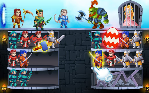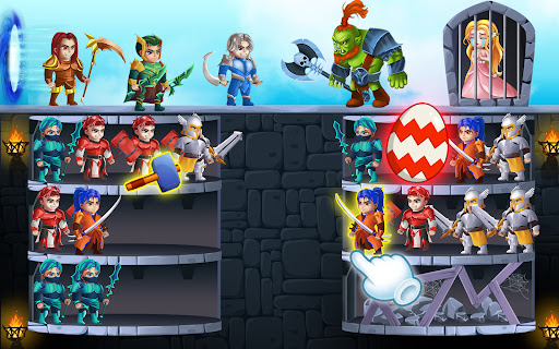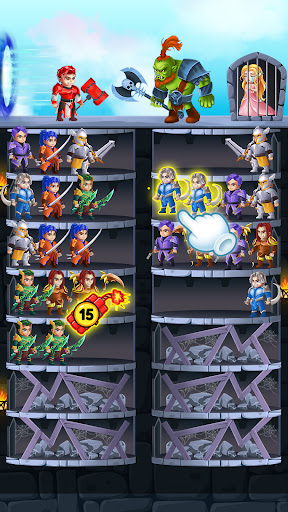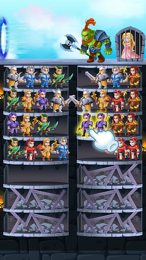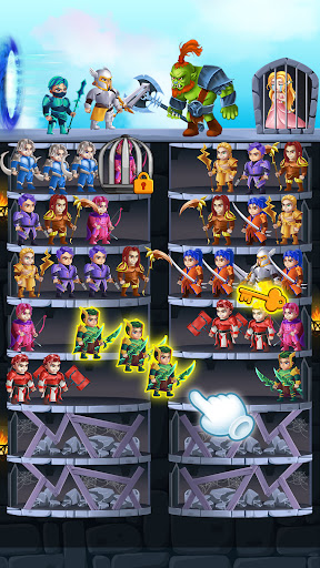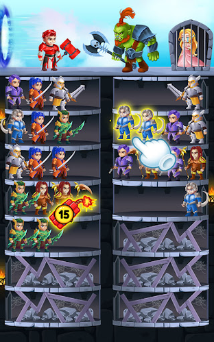 • The rule in this sort puzzle game is that you can only move the sort hero with the same color and enough room on the wall. Once all the heros are free, they can bit the monster and rescue princess.