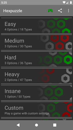 HexPuzzle offers various levels with increasing difficulty. The differences between levels include: