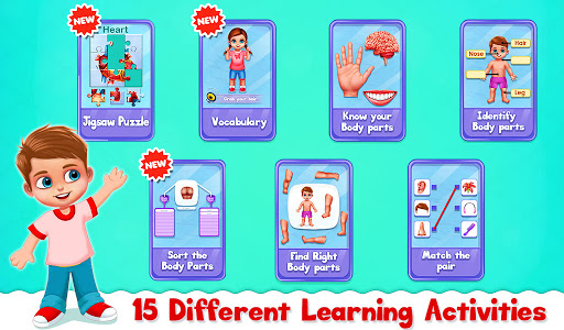 This educational app helps child recognize different body parts (like eyes, ears, nose, hands, legs, stomach, etc.), and learn about it. Not only outer body parts we have a lot of internal organs and skeletons as well to learn. A unique and interactive way for your kids to learn and recognize Human Body Parts basics.