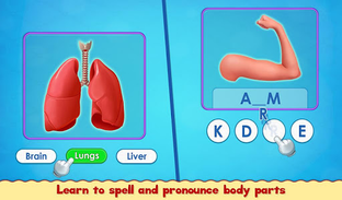 Body parts with pictures and information about each parts is a complete learning book for kids. Learn while you play is our prime factor with this game to design and develop.