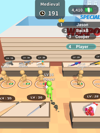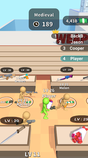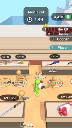 If you become the last one, you can buy better equipment in the next game with more rewards