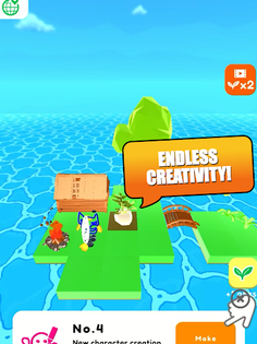 Start the game on a small green land in an open water (ocean). As you grow your land, the green space becomes wider for you to harvest crops. Make your own characters!