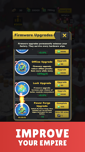 Start off in the quaintest factory you can imagine, where every click counts. As you accumulate riches, unlock unique factories and watch your empire expand faster than your last attempt at cooking! Merge those gears to create higher-level machinery that churns out cash like a fountain of wealth. Who needs a genie when you have gears? Even more, keep earning even when AFK!