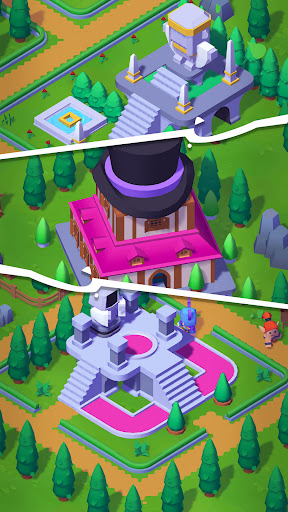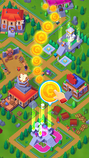 Your goal is to automate the settlement's income by using idle clickers to assign heroes as "managers" to buildings, generating revenue. Improve and unlock new game buildings to afford additional heroes who will explore dungeons and mine various rewards. Completing all idle game tasks within one settlement allows you to progress to the next tycoon location in the game.