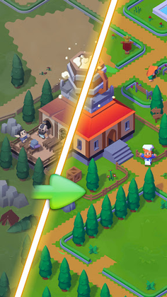 Embark on your idle tycoon adventure by starting with a small settlement, where you can manage heroes to build it up in idle game mode.