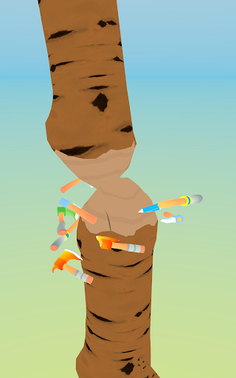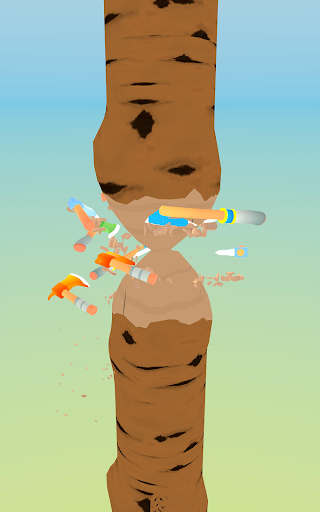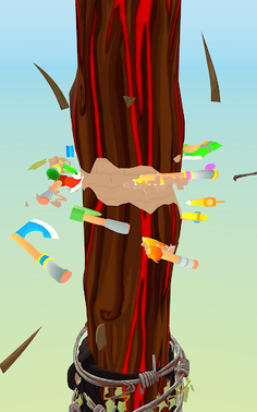 The game starts only one ax. As you hit the ax to the tree, you will win coins. Each hit will bring you 1 coin. With these coins you can improve your ax or buy another one. So you can get much more coins at the same time. Improved axes will make you win much more coins with just one hit. And you can also add new routes for your axes.