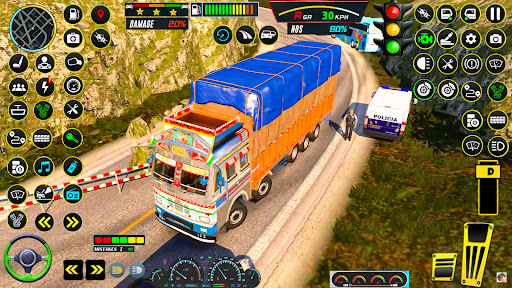 Multiple control options for Indian truck games simulator 3d lorry games 2023: indian larry game 2023: truck ka game 2024
