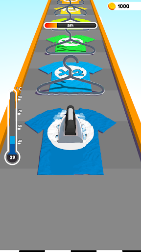 Run the iron, press the clothes flat, avoid obstacles, put the pressed clothes on the shelf to sell.