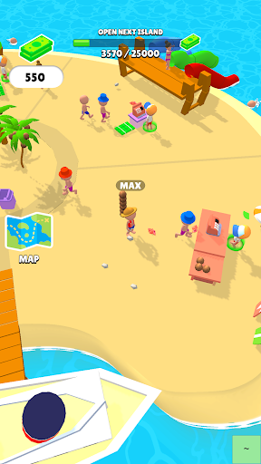 With your trusted tools in hand conquer the wild life of deserted islands. Turn them into luxury resorts. Gather materials, improve the tourist attractions and collect money! With these new funds you can buy fun and exciting upgrades for yourself and your employees – you can hire some helpers too! Watch them run around and handle the shops while cash flows in.