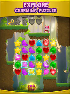 Craft teddy bear tea parties, magical book trees, frog prince ponds, pumpkin carriages and more. The Jellyvale forests are filled with charming puzzles where you can gather jellies to solve story quests and decorate your town. Story quests are given to you by your fairy-tale friends, including: Prince Charming, Little Red Riding Hood, a cozy witch and even a weight-lifting Gingerbread Man!