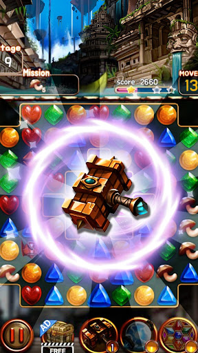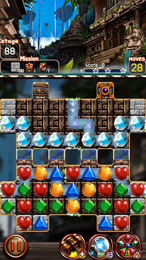 Jewel Ruins is a match 3 game that takes ancient civilization in the deep jungle. Match three jewels to blast them. Enjoy the bejeweled game with awesome high quality background. There are special items that have special abilities. Try out different special abilities and find out which one will help you solve the puzzle. New stages are updated monthly. Let's see who can beat all the puzzles.