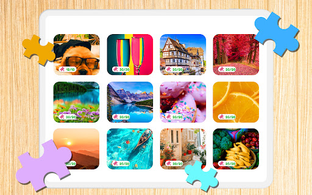 ▶ Tons of beautiful HD puzzles for free: castle, flower, nature, cat and dog, bird, foods, art, photography, patchwork, etc.