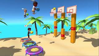 Jump on the trampoline, score the ball into the basket as many points as you can before the time runs out!