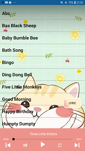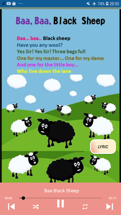 This offline children's application contains a collection of dozens of popular Kids songs according to age which can be used to educate and shape children's character.
