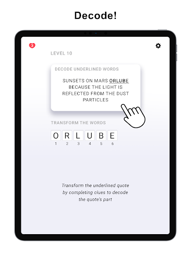 - Multiple game mechanics: decode, swap, drag & drop etc;
