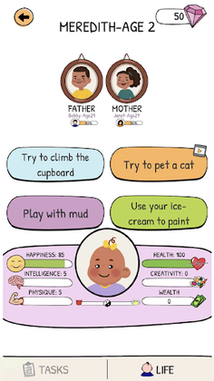 Work on your intelligence, strength and art as you fight the hardships of life. Each choice affects your skills and your skills affect the outcome of your choices. If you like simulator games and story games, this game is very adorable.