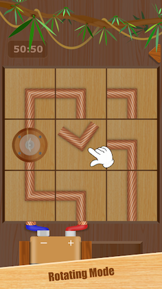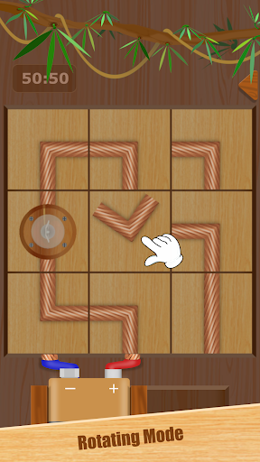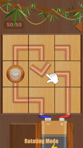 -In Rotating mode once a block is touched, it rotates a quarter circle clockwise and changes the direction of the wire. By changing the direction in this way, take the current from the battery to the bulb. This is like a classic block rotating game