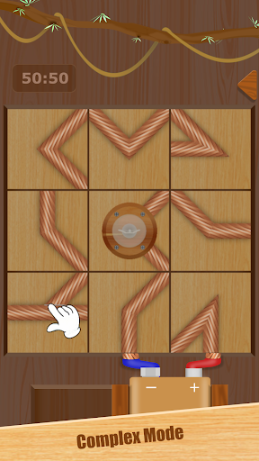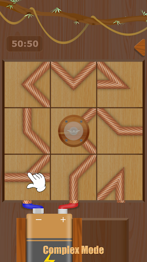 - In complex mode, once a block is touched, it rotates a quarter circle clockwise and changes the direction of the wire. By changing the direction in this way, take the current from the battery to the bulb and turn on the bulb. The specialty of complex mode is that some wires can be connected to each other through the corners of the blocks.