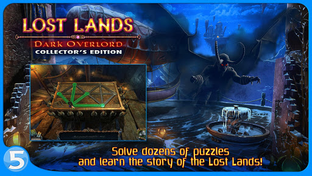 Embark on an exciting adventure in Lost Lands: Dark Overlord, a captivating hidden object game filled with challenging puzzles and mini-games, set in a magical fantasy realm filled with enigmatic inhabitants and unexplored corners. You play as Susan, a frantic mother searching for her son, who was taken by a mysterious force into a portal leading to the Lost Lands, a world replete with secrets and mysteries. As you explore over 50 exhilarating locations, you will encounter puzzles, brainteasers and challenging mini-games. You'll meet several unique fairy-tale characters who will aid you in your quest and who you can help in return. Throughout your journey, you'll have the chance to gather morphing objects, assemble collections, and earn achievements. Plus, delve into a bonus chapter and immerse yourself in a magical underwater world. The game's optimized for phones and tablets, so you can play anytime, anywhere. Save Jimmy and defeat the Dark Overlord to restore peace to the world!