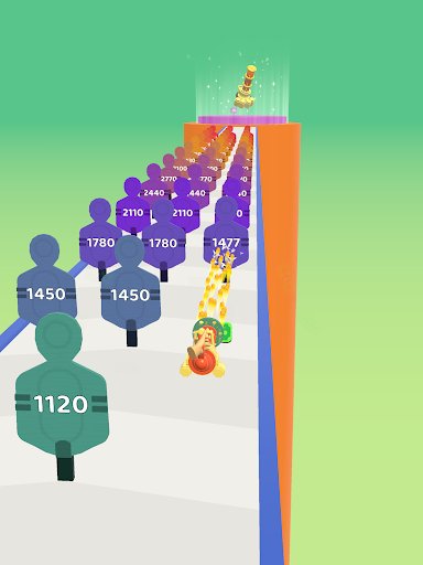 As you accumulate gun barrels, watch in awe as your machine gun transforms into a formidable powerhouse. The barrels move to a side belt, powering up your weapon with each collected batch. Unleash a storm of bullets upon your foes as you pass through gates to level up, increasing your shooting power and range.