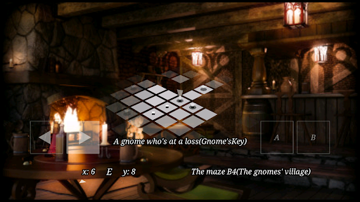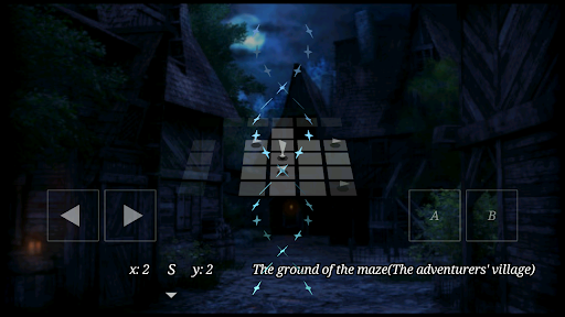 MazyMazes' control system is simple. Use the left and right triangle buttons to change menu items and the party's direction. Use the A button to select a menu item or move forward and the B button to cancel or enter the Camp-menu mode. The app supports keyboard (enter => A, space => B) and the gamepad too. Control layout can be changed in the settings mode.