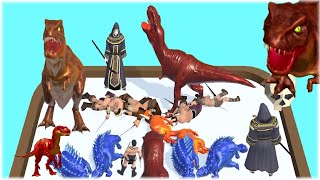 Merge dinosaurs and warriors, make a dino squad fusion and fight against dragons, monsters, and archers to win the epic battle in Jurassic world.
