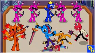 Merge Rainbow Friends: Battle with colorful monsters to create new units and defeat enemies in unlimited playtime with engaging soundtracks.