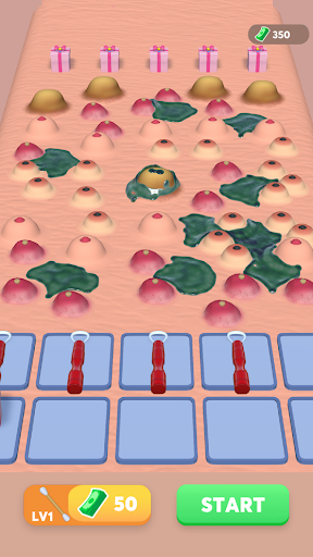 Lead the acne removal tool to eliminate all types of pimples and blackheads, collect all gifts on the map to get money and buy more tools to increase your productivity.