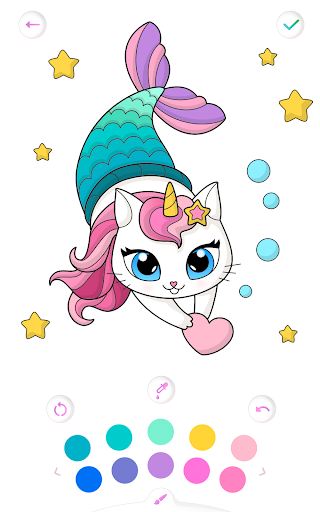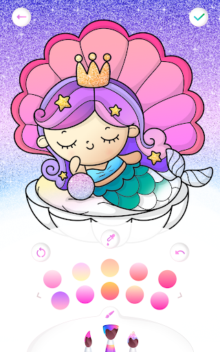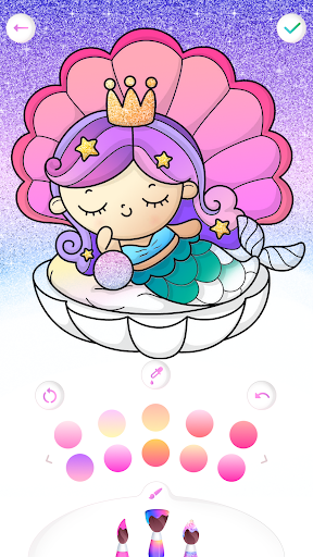 It is a free coloring game for girls with a lot of beautiful mermaids, tropical fishes, shells, dolphins, corals - all the beauty of the ocean! Pretty heroes 🧜🦀🐠 are waiting for the glitter paints, shine gradient colors and amazing accessories. Let's color them together!