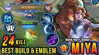 Almost SAVAGE!! 24 Kills Miya Best Build and Emblem - Build Top 1 Global Miya ~ MLBBGameplay Proplayer