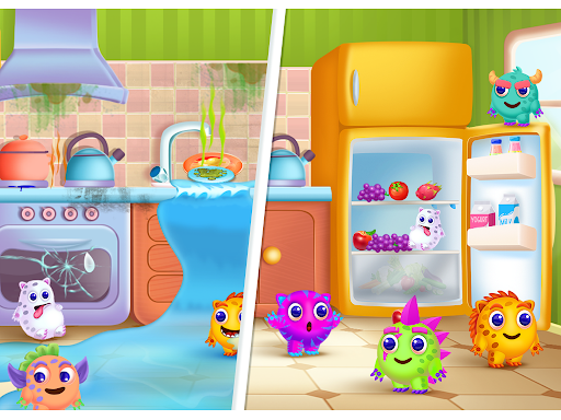 Kitchen Cleaning with monsters: Helps monsters in cleaning. It’s messy all over the kitchen. All sweet monsters are floating. Repair water leakage and clean all the dirt from the kitchen platform.