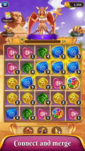 Just connect 2 or more same Jewels to upgrade them, achieve the best score to reveal Cleopatra's treasure.