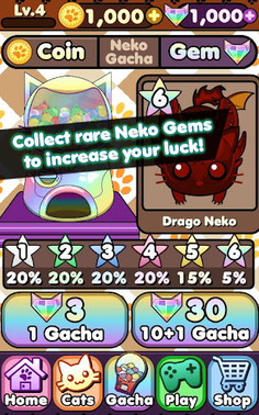★ Use Neko Coins while utilizing the Gacha Machine, or Neko gems to improve your chances of winning!
