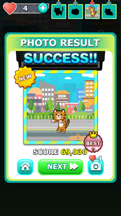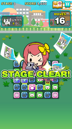It is a three-match puzzle game in which the main character who loves cats goes on an adventure to take pictures of cats.