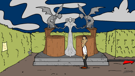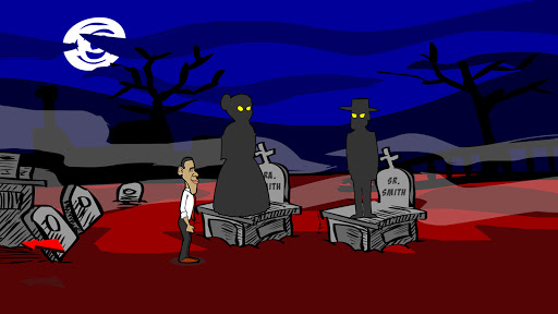 Obama has to fight against dark forces in a haunted cemetery, where a very powerful evil presence lurks.