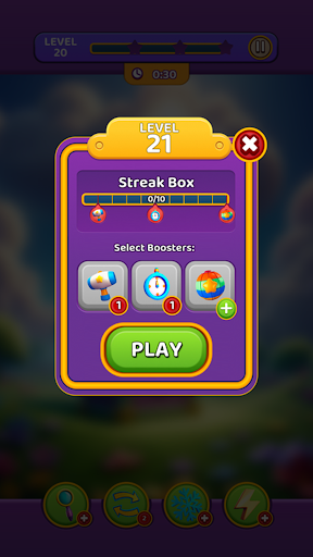 - Hint, shuffle, freeze tile and lightning boosters