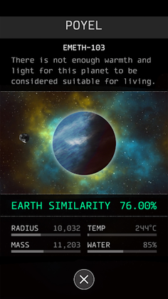 Millions of years into the future, mankind has forgotten its origin - Earth, but Emeth, a little robot, carries on his creator's wish of finding it. The game offers an atmospheric storyline that will give you an immersive experience. Become a NASA scientist by manipulating your space telescope to scrutinize the nearby stars in the outer space. Use your analytical skills to contrast and compare planets to discover the true Earth.