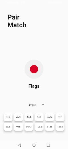 - 12 difficulty levels: from 3x2 up to 8x12 cards