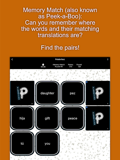 Prepare to be challenged, inspired, and thoroughly entertained with its various game modes: Word Search, Memory Match, Word March, and Sliding Puzzles! Download Palabritaz now and unlock a world of word discovery!