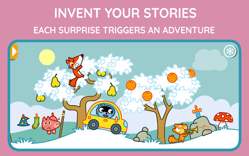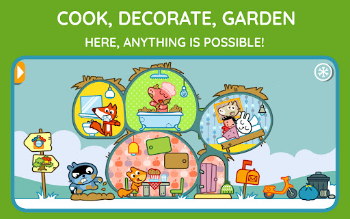 The game also offers adventure and exploration activities. You can use your vehicle to explore exciting adventures like helping Bunny in the garden, digging out prehistoric fossils with Squirrel, building a robot in Fox's workshop or creating a snowman from scratch with Piggy.