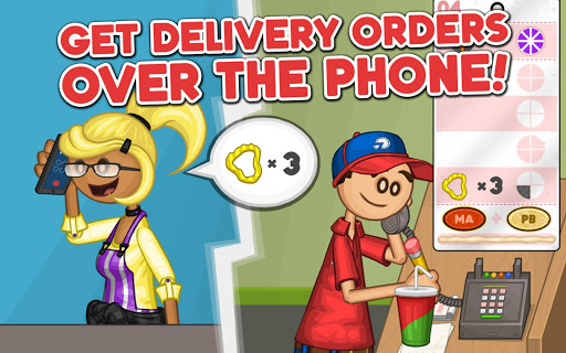 Papa Louie's delicious pizzas are now available for delivery! Hire a delivery person to answer the phone when a customer calls with an order for delivery. When the pizza is ready, they'll bring the pizza right to the customer's house!