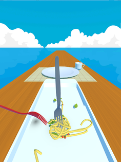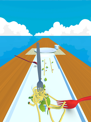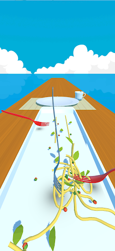 Manipulate the rotating fork to twirl a lot of pasta.