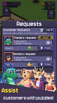 Once the shop is up and running, customers will start arriving and ask you to solve puzzles for them.