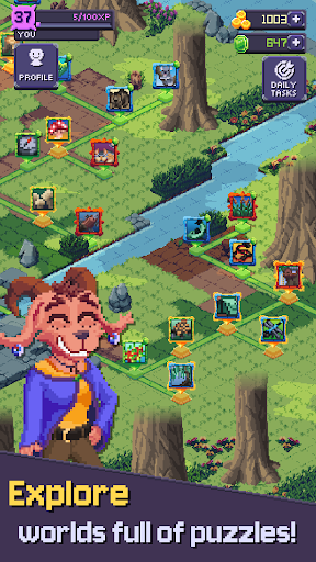 - Puzzles range from 5x5 to 25x25 in size and are unlocked in a branching manner, so you can choose to leave harder puzzles and come back to them when you're ready!